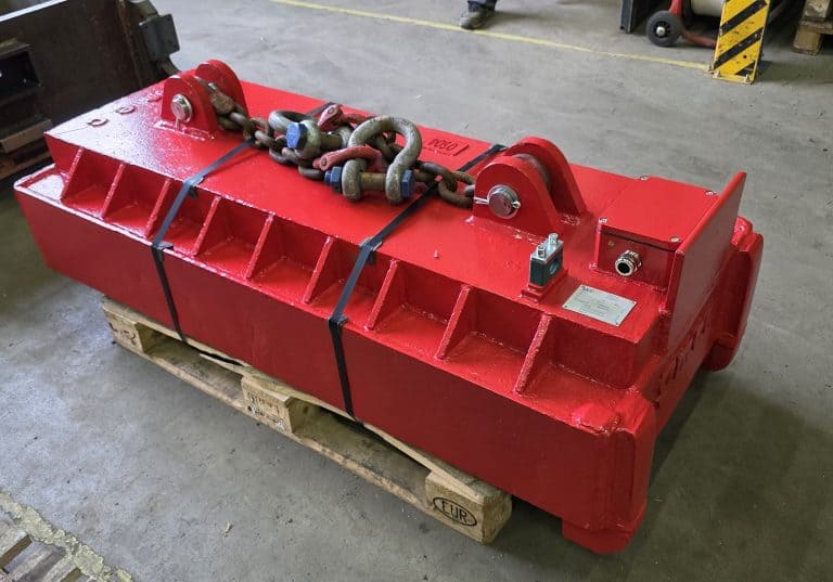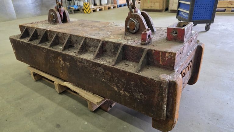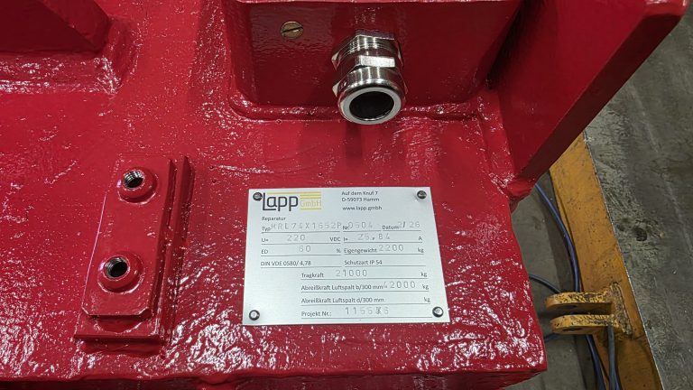 Dieser Lastmagnet wurde von Grund auf überarbeitet: Polflächen gefräst und um ca. 20 mm aufgeschweißt, innen komplett gereinigt und mit neuer Spule ausgestattet.
